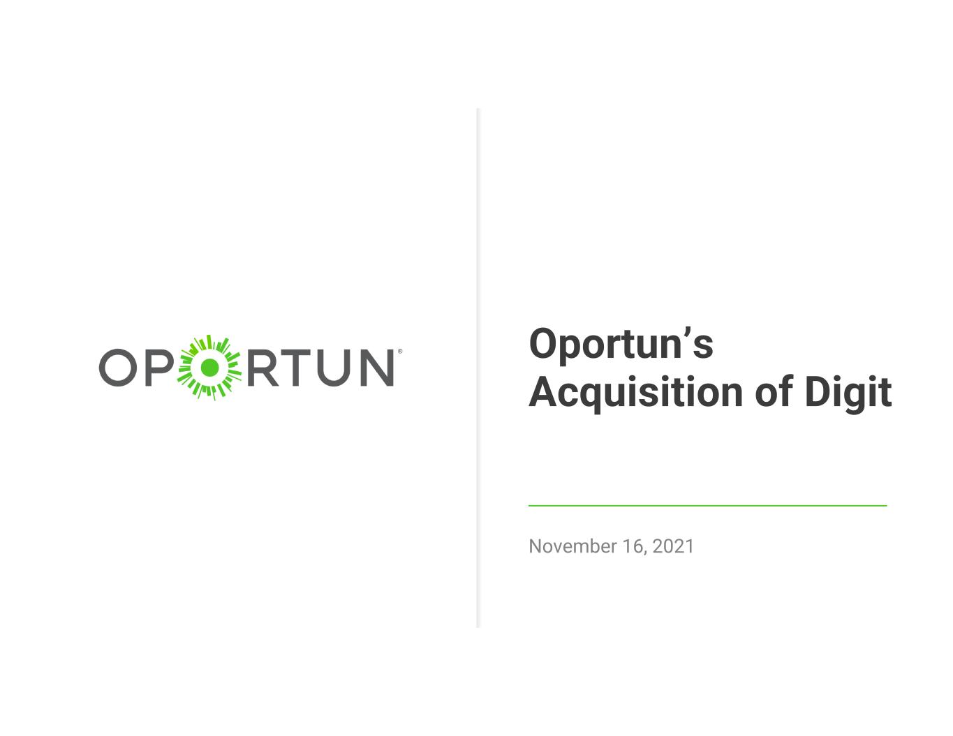 Oportun’s Acquisition of Digit November 16, 2021